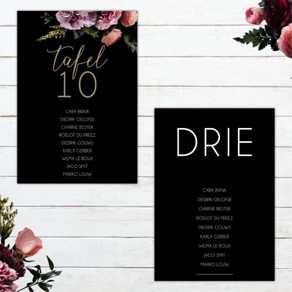 8) Table numbers (3 options)